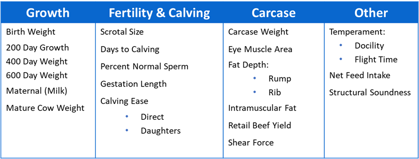 BREEDPLAN calculates Estimated Breeding Values (EBVs) for a range of economically important traits: