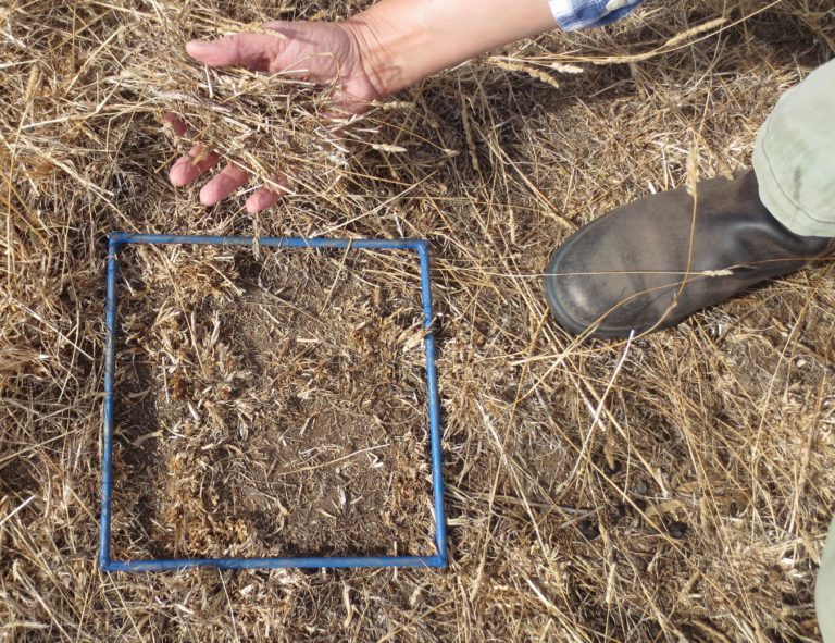Getting good germination: Following seed fall, the aim is to prepare for germination. This requires removing most of the dry material and may require large mobs, given the large build-up of dry material which may have occurred since lock-up in mid-spring and the limited time before the autumn break. Graze down to about 1,000kg/ha before the autumn break. This is equivalent to about one to two handfuls of dry loose material in 0.1m2 (31 by 31cm quadrat).