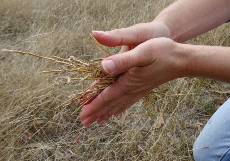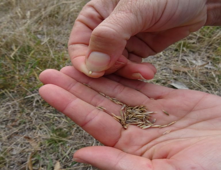 Maximising seed fall: Natural seed fall from the reproductive tiller requires the seed heads to become brittle. This may not occur for several weeks after ripening. To assist this process, the seed head can be disturbed to enhance seed fall.