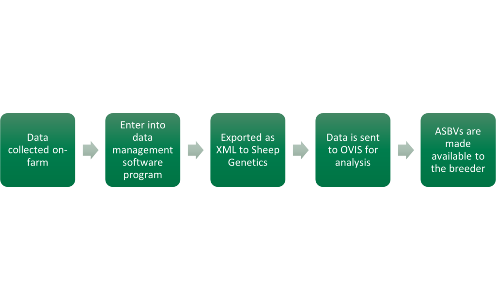 The data should be recorded in a compatible software program, a list of which can be found on the Sheep Genetics website. A link to this will be provided upon completion of this module.