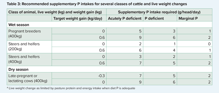 Breeders in late pregnancy or lactating breeders grazing dry season pastures in phosphorus-deficient country still have high P requirements.