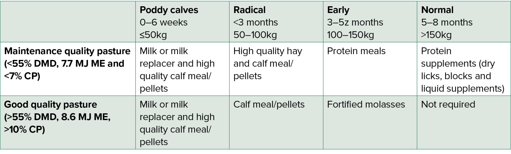 *Calves <150 kg require a minimum of 15% crude protein for unrestricted growth