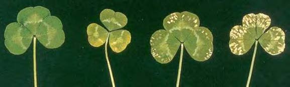 What could bronzing of sub-clover leaf margins which develop into pale grey spots be a sign of?